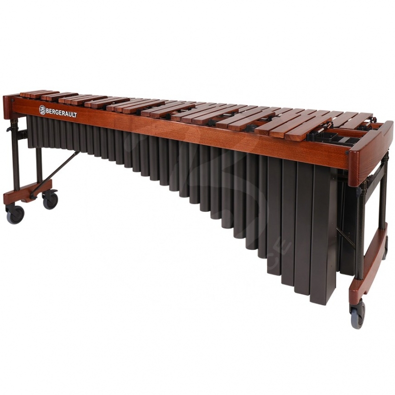Bergerault 4,6 oct. Signature Classic marimba – 1st choice Honduras Rosewood bars Range: 4,6 oct. E2-C7 Tuning A=442 Hz Grain wood mahogany frame Aluminum resonators black coating 4 castors Ø 100 mm, 2 with brakes Adjustable height with hydropneumatic jacks First choice Honduras Rosewood bars