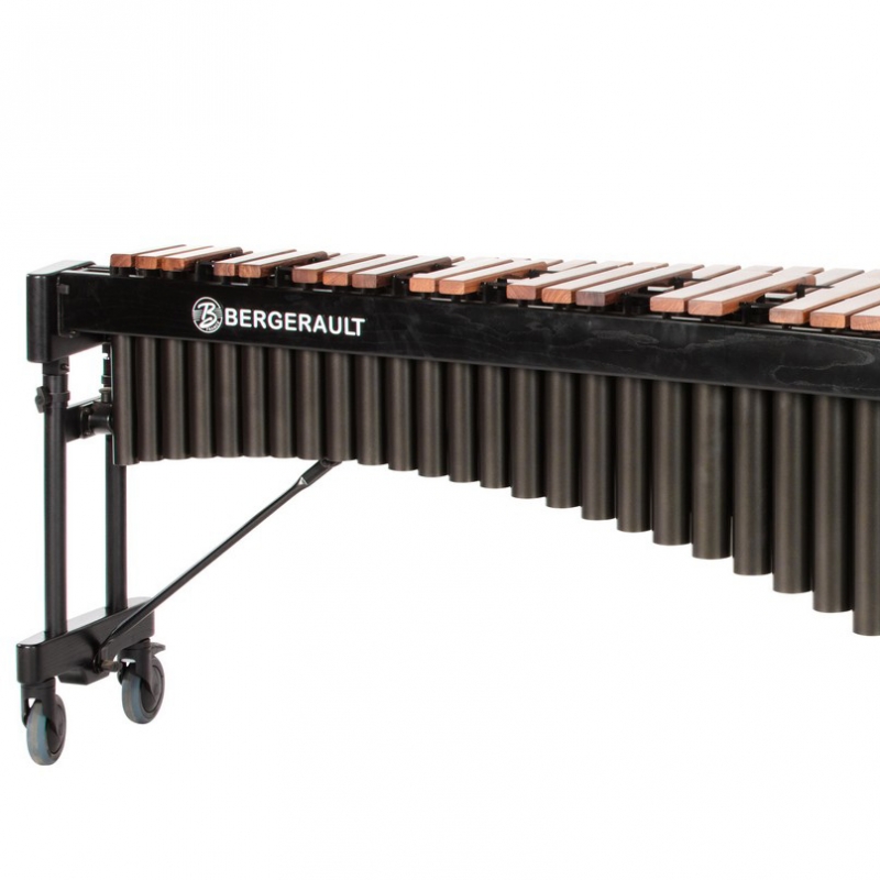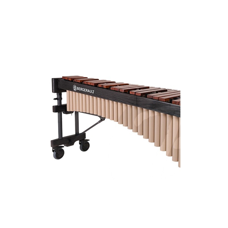 Bergerault 4,3 oct. Signature Classic marimba – 1st choice Honduras Rosewood bars Range: 4,3 oct. A2-C7 Tuning A=442 Hz Grain wood mahogany frame Aluminum resonators "Black Metal" coating 4 castors Ø 100 mm, 2 with brakes Adjustable height with hydropneumatic jacks First choice Honduras Rosewood bars