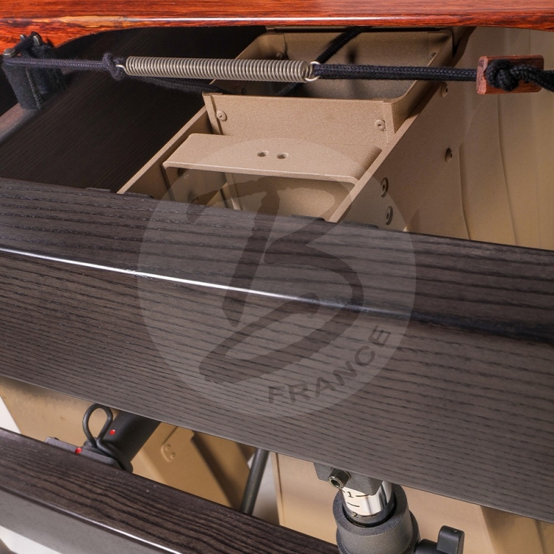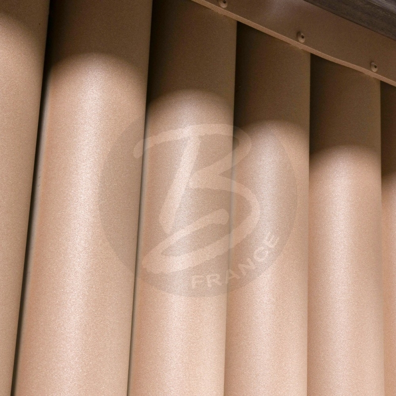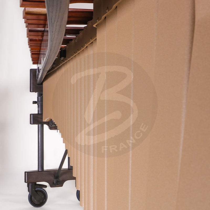 Bergerault 5 oct. Signature Classic marimba – 1st choice Honduras Rosewood bars Range: 5 oct. C2-C7 Tuning A=442 Hz Finish: grain wood grey frame Aluminum resonators "Champagne" coating 4 castors Ø 100 mm, 2 with brakes Adjustable height with hydropneumatic jacks First choice Honduras Rosewood bars