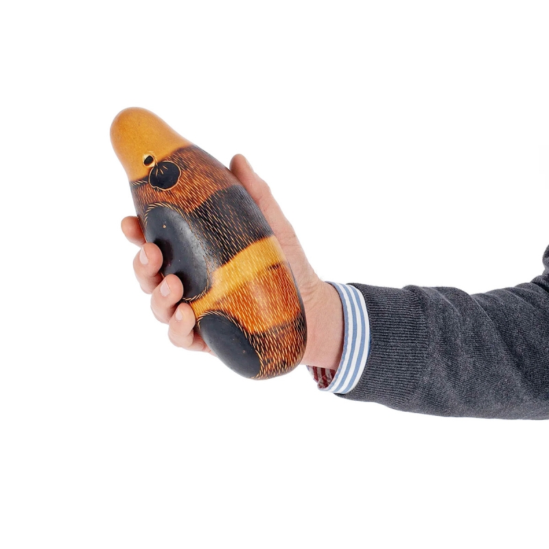Playing an important role in the folk culture of the Andes, the guinea pig design is hand-carved and painted on the gourd for a unique look and feel. The intricate patterns and guinea pig design incorporates the guiro ridges for a seamless finish.