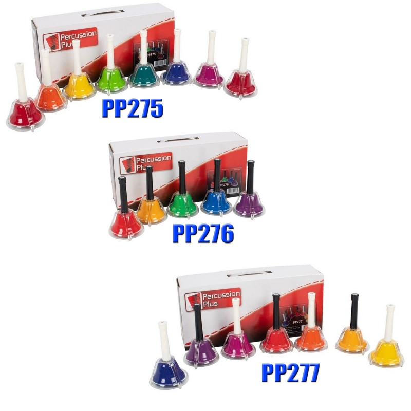 The Percussion Plus PP277 7-piece set, supplemented with the PP275 8-piece C-major diatonic series and the PP276 5-piece unit, makes up a full chromatic scale, so the sound range is now supplemented with the single-line A-A#-H and the three-line C#-D-D#-E notes, giving us a 20-piece, 1.5-octave range of notes. The bells can be used to create incredibly fun and easy musical games in the classroom or when playing music in a group. The bells can be played by shaking them or pressing the button on the top. Each bell is made of strong metal with a plastic handle and a plastic protective cover, so you don't have to worry about damage and detuning, because the cover effectively protects your instrument from any negative effects that may occur.