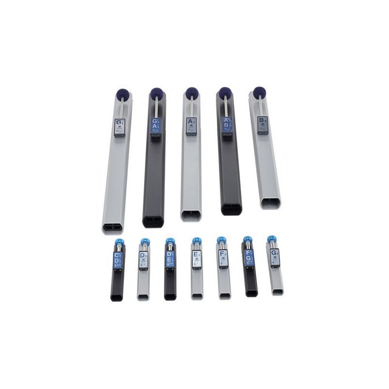 This is a smaller, expansion set of hand chimes which has been created to work in addition to the HB-250. HB-12A 3rd octave expansion kit sets of chimes.