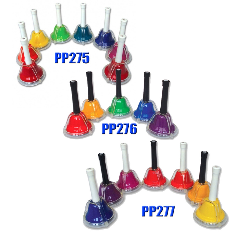 A csengettyűkkel hihetetlenül szórakoztató és könnyed zenei játék hozható létre osztályteremben, vagy csoportosan zenélve. A csengettyűket rázva, vagy a tetején lévő gombot megnyomva tudjuk megszólaltatni. Minden csengő erős fémből készült műanyag fogantyúval és egy plasztik védőburkolattal, így nem kell sérülések és elhangolódás miatt aggódni, mert a burkolat hatékonyan megvédi a hangszerünket az estlegesen bekövetkező negatív hatásoktól.