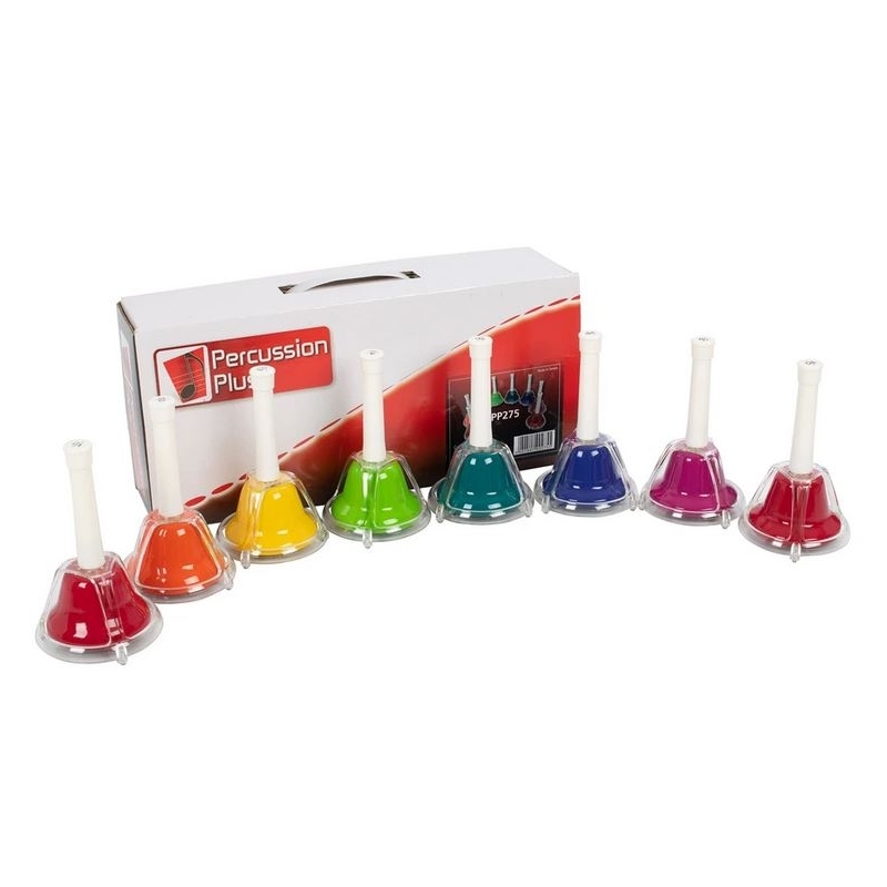 A csengettyűkkel hihetetlenül szórakoztató és könnyed zenei játék hozható létre osztályteremben, vagy csoportosan zenélve. A csengettyűket rázva, vagy a tetején lévő gombot megnyomva tudjuk megszólaltatni. Minden csengő erős fémből készült műanyag fogantyúval és egy plasztik védőburkolattal, így nem kell sérülések és elhangolódás miatt aggódni, mert a burkolat hatékonyan megvédi a hangszerünket az estlegesen bekövetkező negatív hatásoktól.