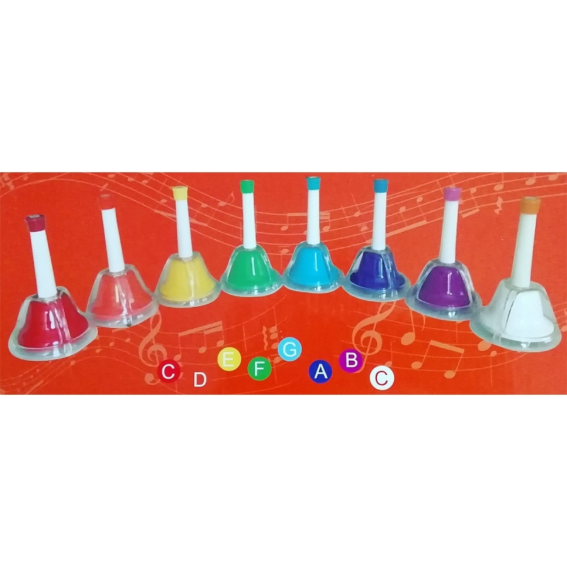 A csengettyűkkel hihetetlenül szórakoztató és könnyed zenei játék hozható létre osztályteremben, vagy csoportosan zenélve. A csengettyűket rázva, vagy a tetején lévő gombot megnyomva tudjuk megszólaltatni. Minden csengő erős fémből készült műanyag fogantyúval és egy plasztik védőburkolattal, így nem kell sérülések és elhangolódás miatt aggódni, mert a burkolat hatékonyan megvédi a hangszerünket az estlegesen bekövetkező negatív hatásoktól.