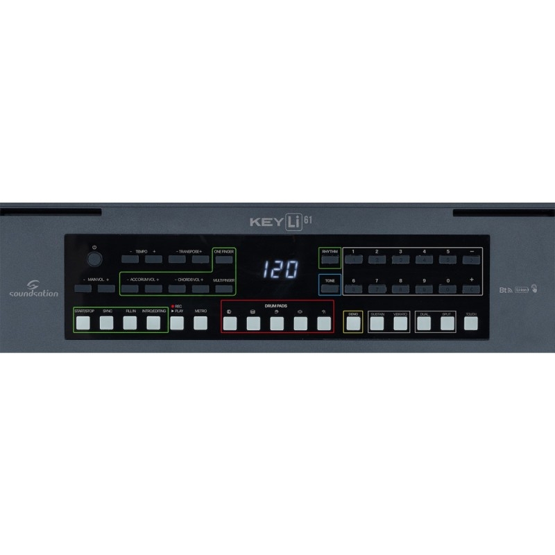 A Soundsation KeyLi-61 egy olyan billentyűzet, amelyet mind a kezdőknek, mind pedig azoknak a zenészeknek terveztek, akik már arranger billentyűzetet használnak. A 61 érintésérzékeny zongoratípusú billentyűvel, 300 különböző hanggal, 300 kíséretritmussal és 80 demódallal felszerelt billentyűzet lehetővé teszi a felhasználó számára, hogy különféle zenei műfajokat játsszon. A KeyLi-61 billentyűzet összes funkciója könnyen elérhető az egyszerű és intuitív kezelőpanelnek köszönhetően. A KeyLi-61 számos funkciója, mint például a DUAL, SPLIT, REC/PLAY és "Bt Audio Streaming" csatlakozás, általában a nagyobb billentyűzeteken található csak meg, hogy bővítsék a felhasználók kreativitását. Hozzáadhat egy sustain pedált (nem tartozék) a hitelesebb zongoraelőadások érdekében. A hangvisszaadás két integrált 5 wattos hangszórón keresztül történik. A KeyLi-61 újratölthető lítium akkumulátorral van felszerelve, hosszú élettartammal, tökéletes iskolai használatra és zenei szórakoztató előadásokhoz. Az összes funkció, a kompaktság, az akkumulátoros működés lehetősége és a házba integrált fogantyúnak köszönhetően könnyű szállíthatóság, kiváló minőség/ár aránnyal rendelkező billentyűzetet eredményez.